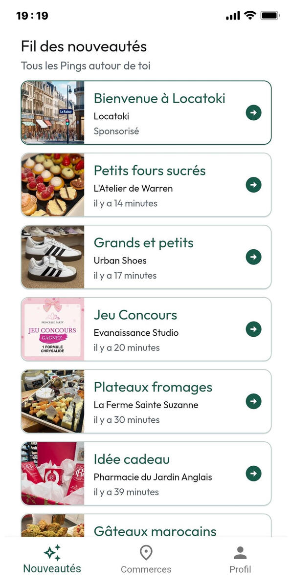 C'est un outil puissant pour communiquer des offres spéciales, des nouveautés, ou des événements, tout en incitant les consommateurs à interagir ou à se déplacer. Le Ping de Locatoki agit comme un signal clair et direct, conçu pour maximiser l'engagement et transformer l'intérêt en action.